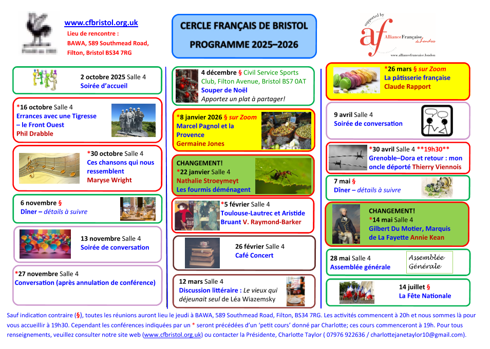 Programme of events for the Bristol French Circle 2025–2026
